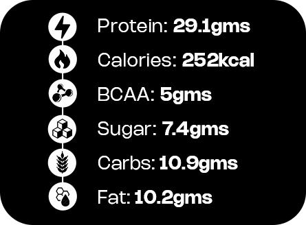 25.1g Protein + Badam + Kesar + Milk + Ice. Made with classic chocolate flavour gut loving bio-fermented yeast protein for easy digestion and real muscle support. Volume: 250-300 ml